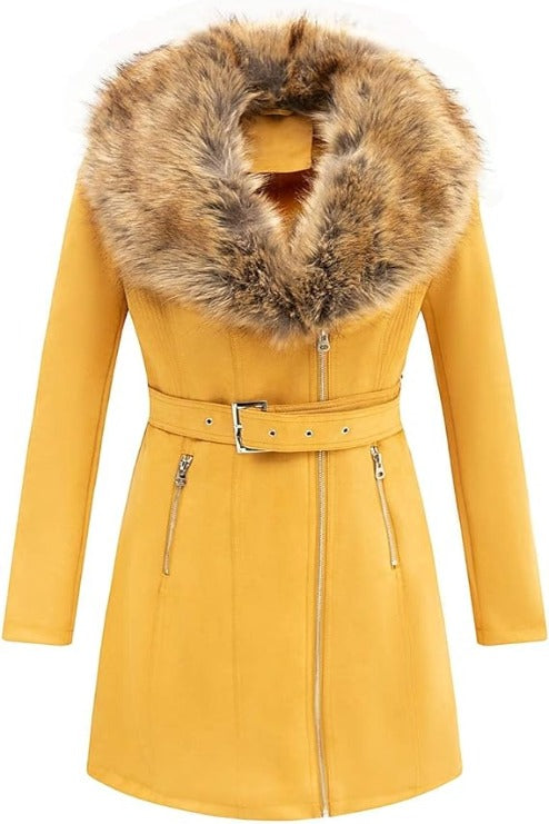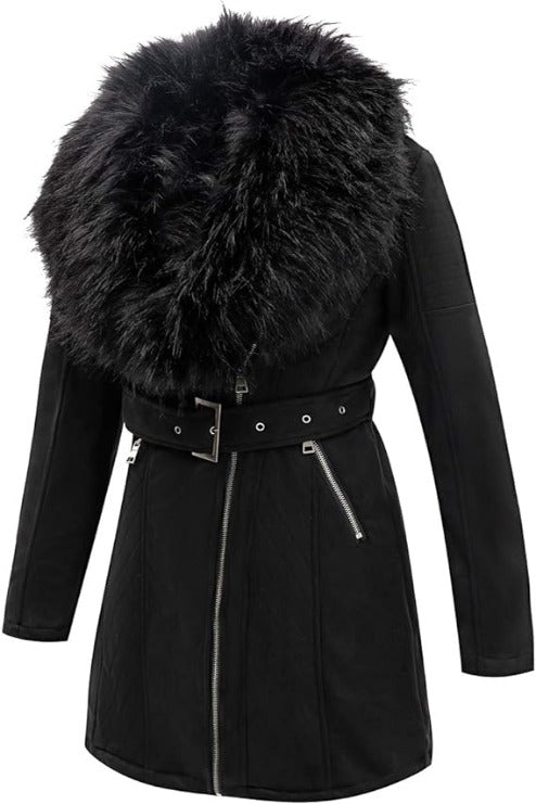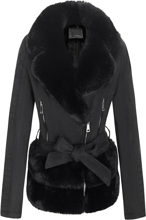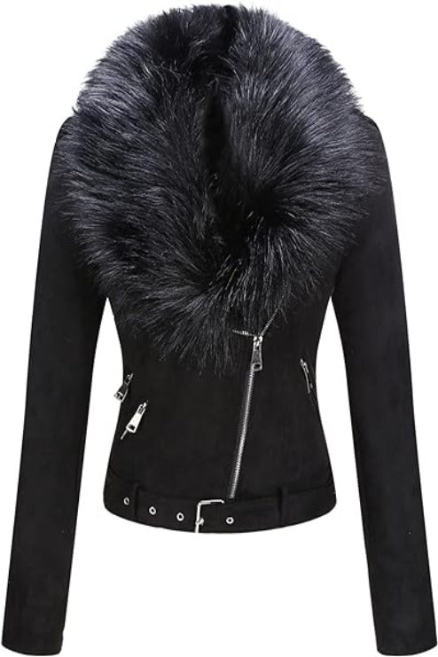 Giolshon Women Faux Suede Leather Jacket Sherpa-Lined Coat with Removable Belt