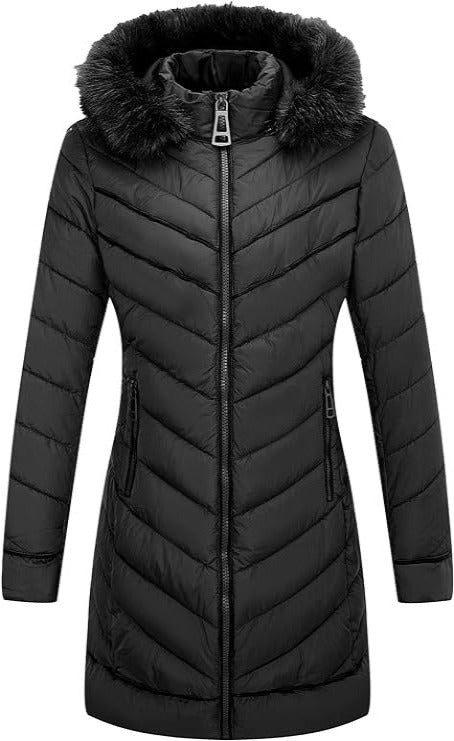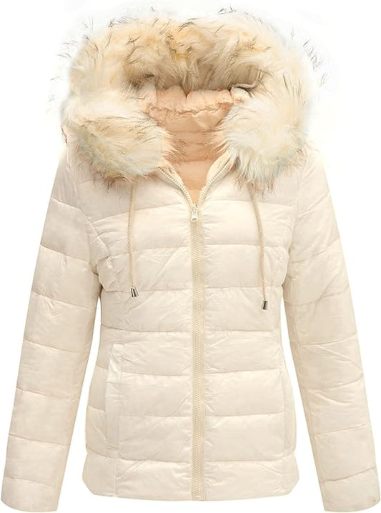 Giolshon Puffer Jacket Women, Fur Collar Warmth Outerwear coat