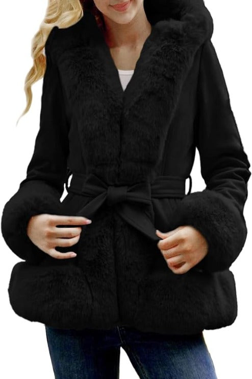 Giolshon Women Double Sided Faux Fur Jacket Reversible Hood Puffer Coat with Fur Collar