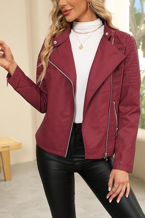 Giolshon Women Faux Leather Casual Jacket, Motorcycle Bike Coat