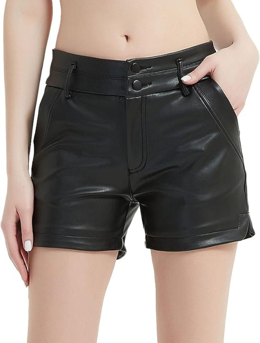 Giolshon Women Faux Leather High Waist Stretchy Motorcycle Shorts
