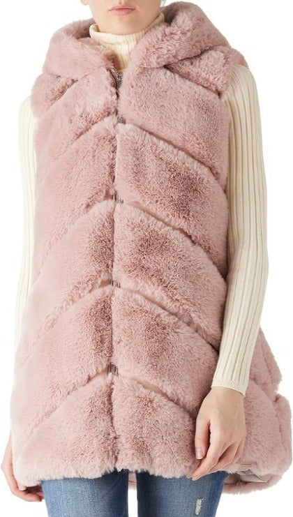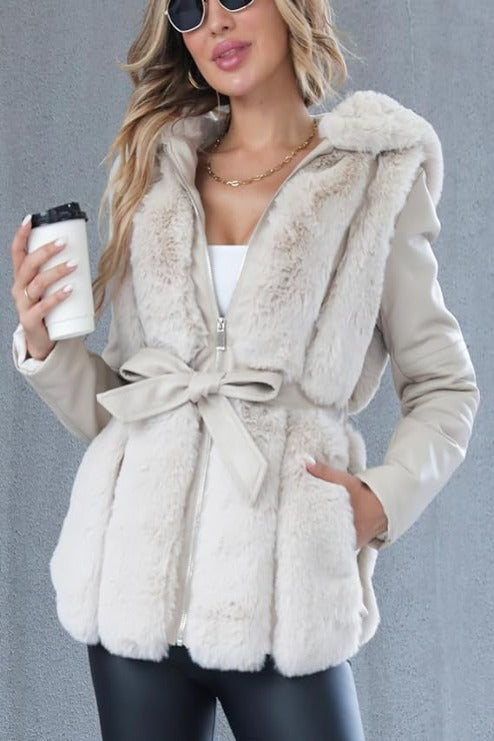 Giolshon Women Faux Fur Leather Vest Sleeveless Warm Fuzzy Coat
