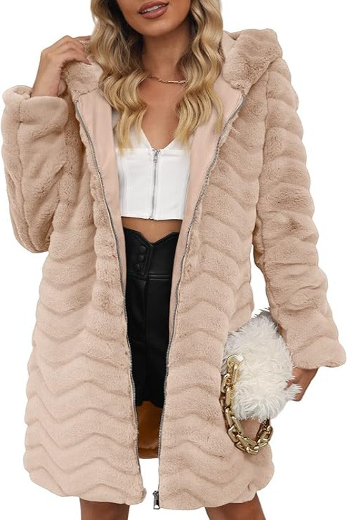 Giolshon Women Faux Fur Coat Long Sleeve Fuzzy Jacket with Big Hand Pockets