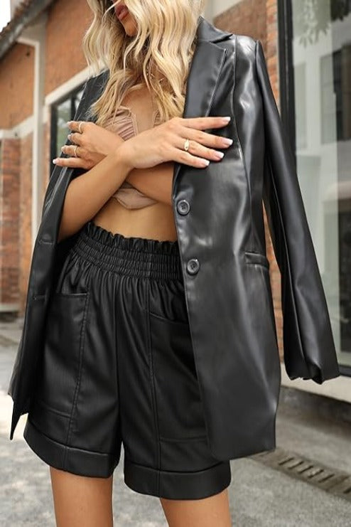 Giolshon Women Faux Leather Jacket Blazer Long Sleeve Oversize Coat
