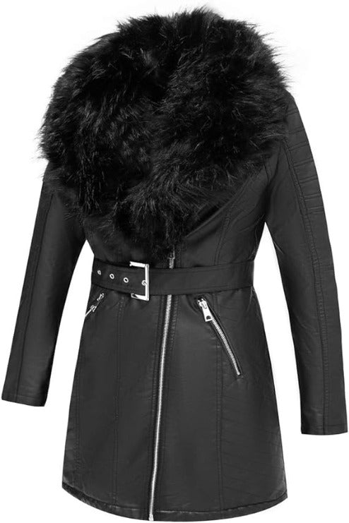 Giolshon Women's Faux Leather Fleece Lined Coat